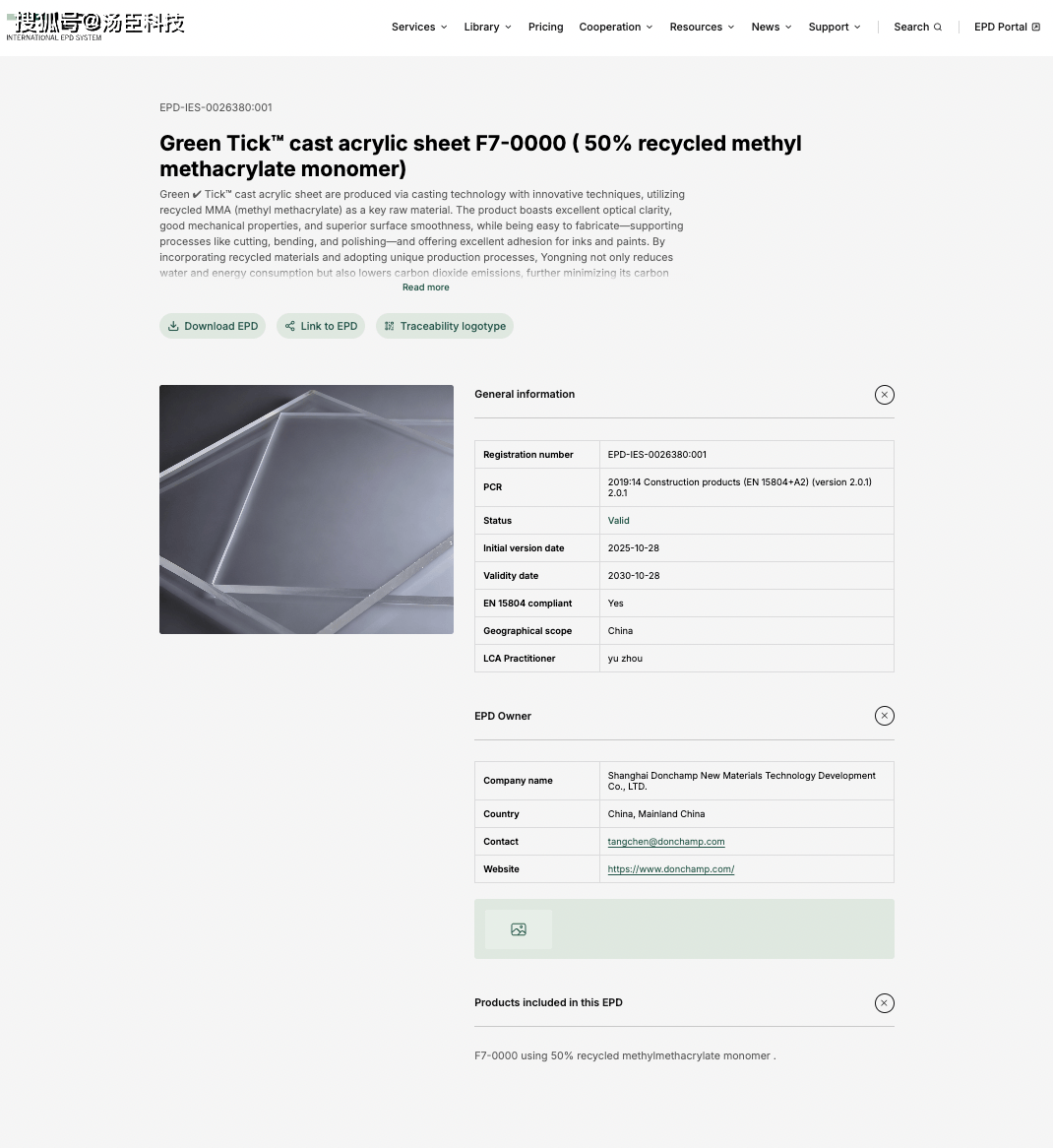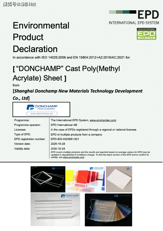 更是我们正在建建行业配合交出的一份绿色答卷。能够供给客不雅、通明且经第三方验证的消息,鞭策亚克力财产的轮回化成长。产物声明)是合适ISO 14025尺度的III型声明,汤臣科技集团将进一步巩固国内市场份额,全球亚克力分析供应商——汤臣(江苏)材料科技股份无限公司的两类建材产物成功取得EPD认证,